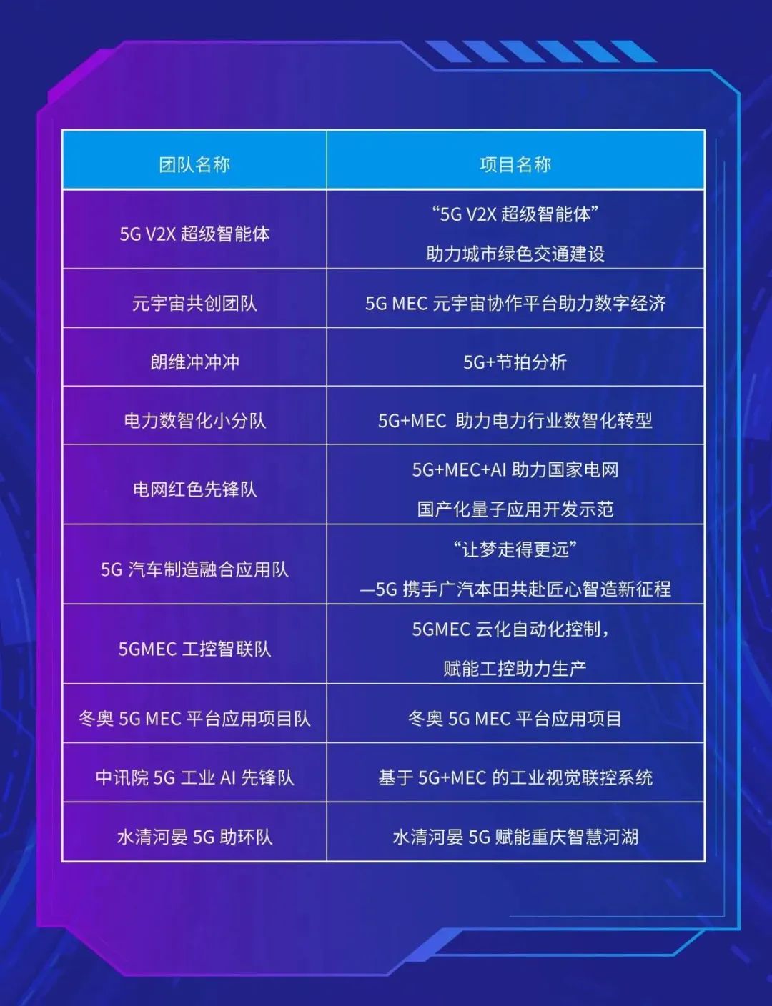 本屆大賽“5G MEC”賽道決賽評審團由中國信息通信研究院產業互聯網研究部副主任張恒升、中國聯通集團政企客戶事業群5G應用BU總監陳丹、聯通數字科技有限公司5G應用創新中心總監王常玲、中國聯通智網創新中心5G創新中心總監蔡超、中訊郵電咨詢設計院創新業務部總經理辛榮寰五位專家組成。