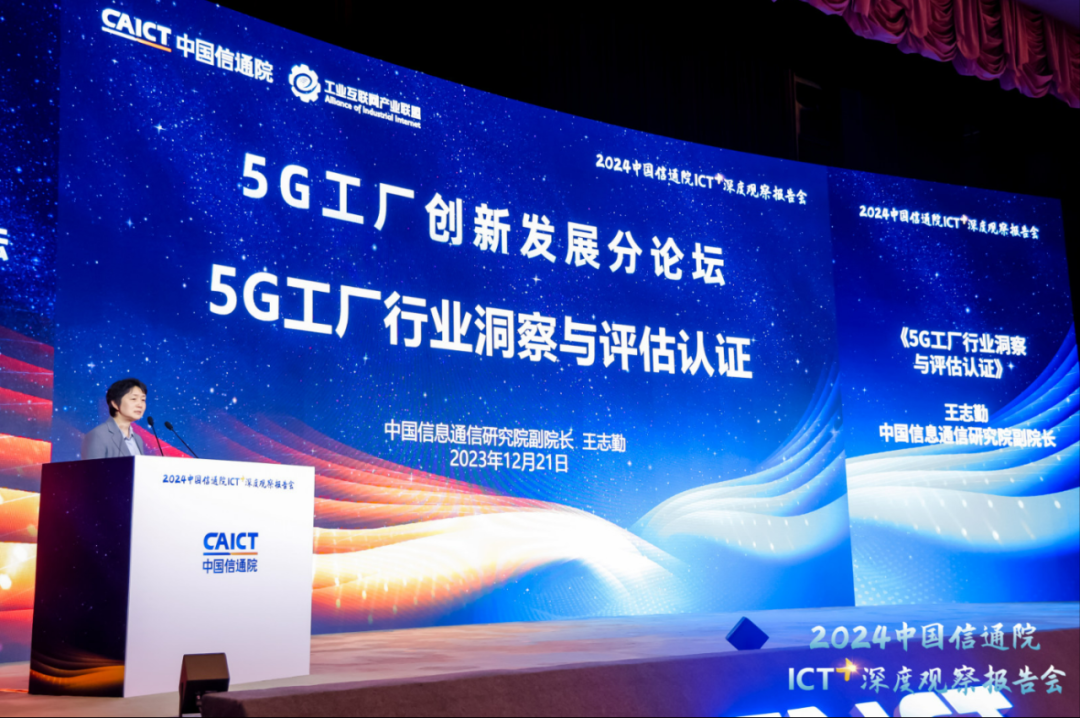 2023年12月21日下午,“2024中國信通院ICT深度觀察報告會”5G工廠創新發展分論壇在北京成功舉辦。本次論壇以“5G工廠 智造未來”為主題,由中國信息通信研究院(以下簡稱“中國信通院”)主辦,工業互聯網產業聯盟、互聯網與工業融合創新工業和信息化部重點實驗室承辦。工業和信息化部信息通信管理局一級巡視員王鵬、中國信通院副院長王志勤出席,中國信通院技術與標準研究所副所長湯立波主持。