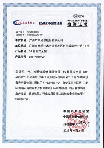 近日,廣州廣哈通信股份有限公司自主研發(fā)的GHT-AQM1000 5G智能安全帽順利通過第一批“5G+工業(yè)互聯(lián)網(wǎng)”鑄鏈計(jì)劃產(chǎn)品測(cè)試,測(cè)試內(nèi)容涵蓋5G NR基本功能、業(yè)務(wù)性能、數(shù)據(jù)性能和行業(yè)應(yīng)用終端功能等方面。
