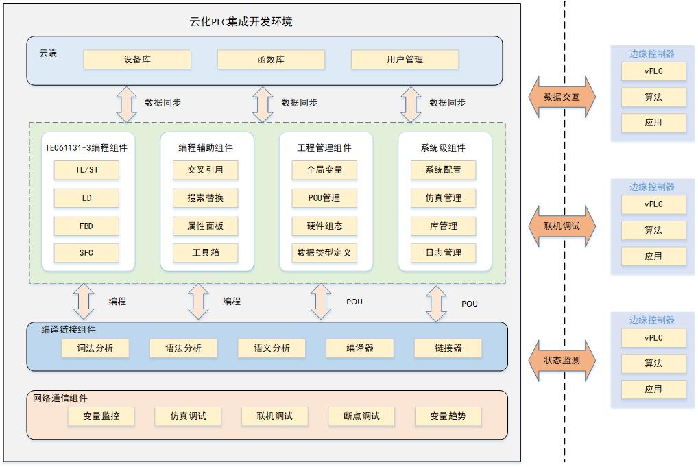 云化PLC集成開發環境以核心功能模塊為單元進行圖形界面和業務數據的模塊化組件設計開發,高內聚低耦合功能模塊單元構建了可靠性高、拓展性強的云化PLC集成開發環境。
