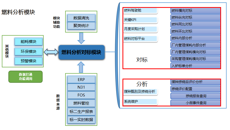 燃料分析模塊提供不同項目公司的燃料對標平臺,通過對關鍵燃料指標的對比,促進燃料管理水平提高。同時,通過采集各模塊的安全、環(huán)保、經(jīng)濟數(shù)據(jù),建立各機組的不同摻燒方式的事后評價檔案,幫助項目公司積累經(jīng)驗,優(yōu)化摻燒方案。