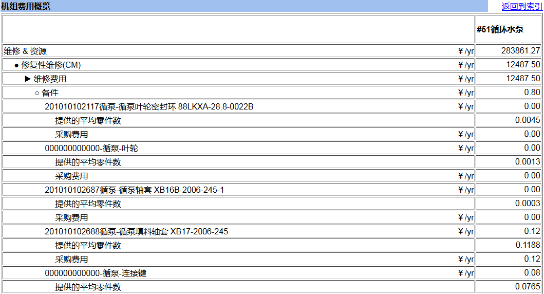 通過制定各設備的拆解結構關系,失效原因分類,不同部件的可靠性壽命時間,檢修成本等,并與實際檢修記錄相結合,建立以可靠性為中心的維護優(yōu)化策略,通過調整和比對不同的檢修方案,優(yōu)化現(xiàn)有的檢修策略,達到消除設備欠修,避免設備過修的目的,在整體保障設備可靠性的同時,降低檢修費用。為設備的經(jīng)濟性提供了支撐。