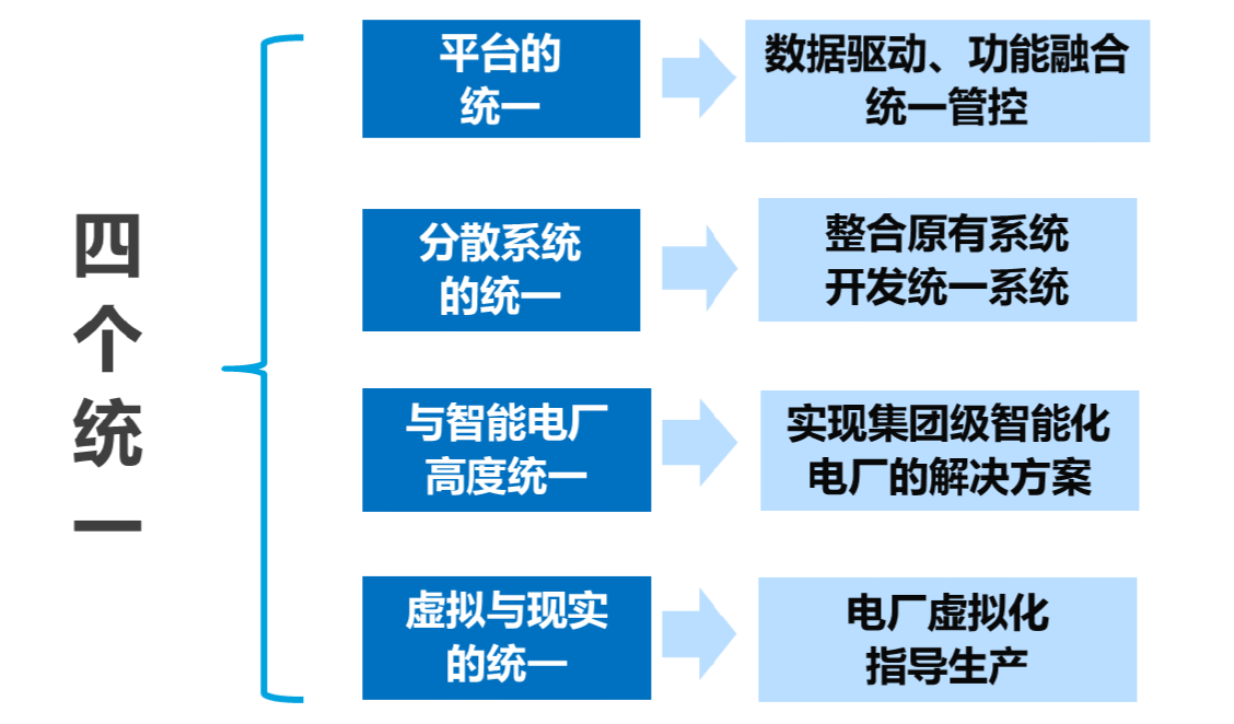 5、整合現(xiàn)有資源,形成統(tǒng)一互聯(lián)網(wǎng)平臺,完成數(shù)據(jù)驅動、功能融合的統(tǒng)一管控、整合原有系統(tǒng)并開發(fā)統(tǒng)一系統(tǒng)、實現(xiàn)集團級智能化電廠的解決方案、電廠虛擬化指導生產(chǎn)。