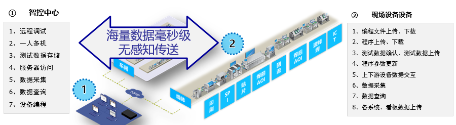 生產(chǎn)現(xiàn)場通過部署PON網(wǎng)絡(luò),將生產(chǎn)過程現(xiàn)場設(shè)備(包括錫膏的印刷、焊錫檢測、貼片、AOI(自動光學檢查)等)產(chǎn)生的海量數(shù)據(jù)快速上傳到智控中心/云端,實現(xiàn)了對生產(chǎn)線的監(jiān)控、分析和控制。