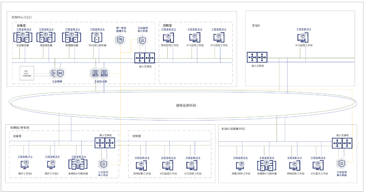 地鐵信號系統(tǒng)是保證列車安全、準(zhǔn)點(diǎn)、高密度運(yùn)行的重要技術(shù)裝備。本方案是針對Y市某號線信號系統(tǒng)的符合等級保護(hù)(三級)要求的安全防護(hù)建設(shè)方案。