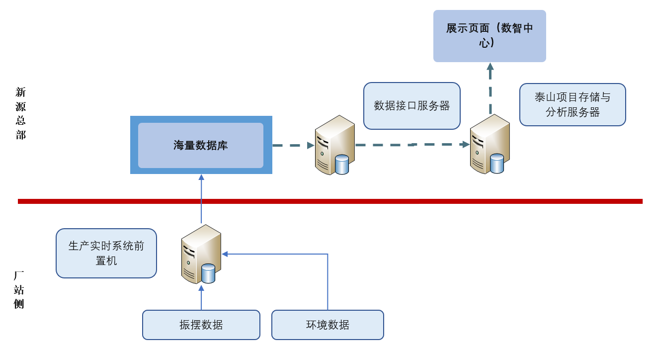 利用工業互聯網平臺的大數據承載與交換分析能力,實現抽蓄機組主設備生產實時數據的提取與存儲,并運用大規模計算集群進行高效的數據挖掘與人工智能訓練工作,并通過可視化技術對分析結果進行全方位展示,直觀展示新源公司全局、各抽蓄電站、水輪發電機組的設備狀態實時信息。