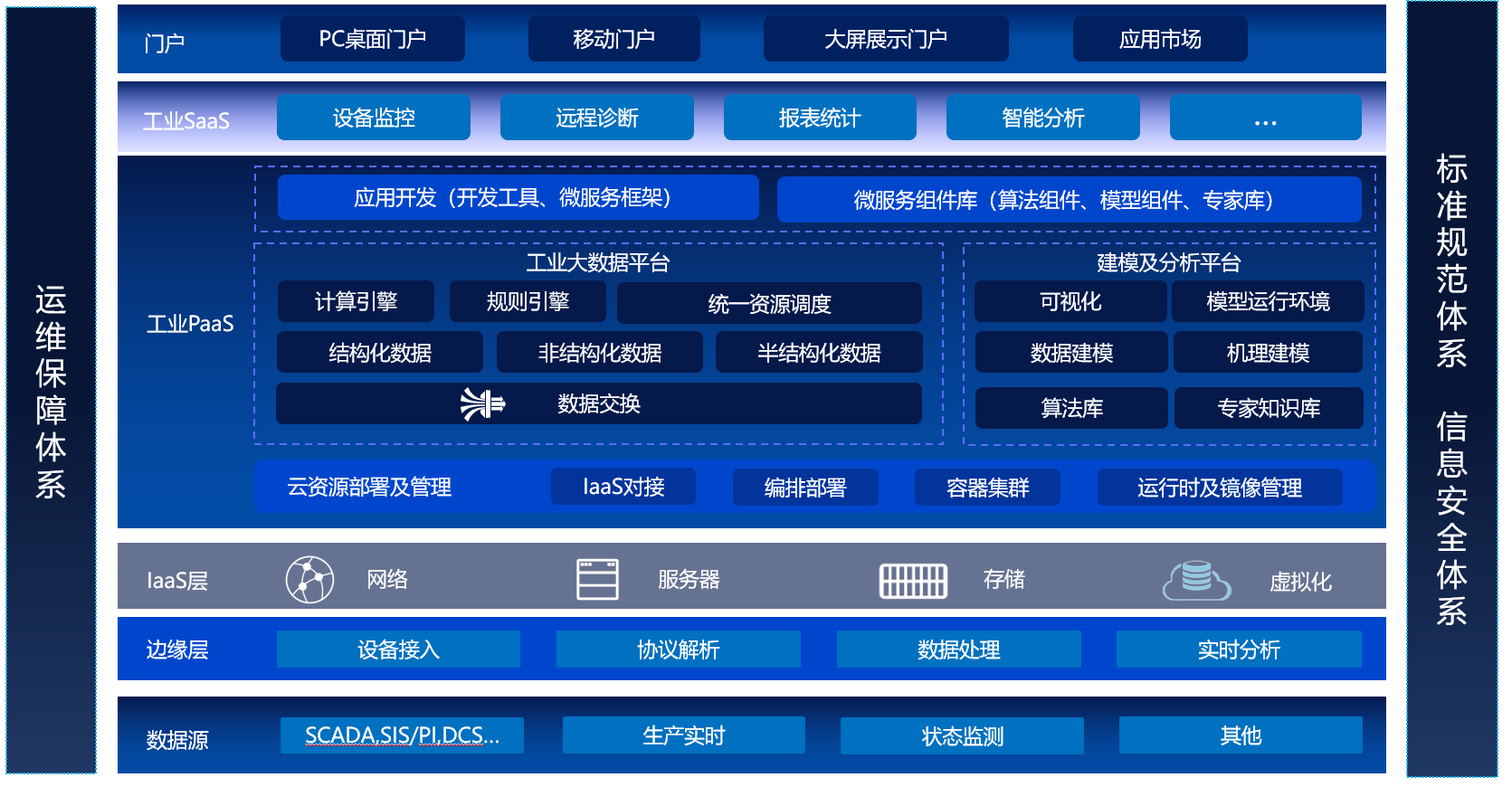 新源公司廣泛地建設了諸多系統,系統每天產生大量的生產基礎數據和分析數據。隨著設備狀態監測與管理模式的不斷提升,傳統的數據處理方法已經不再適用,太極股份作為承建單位,需依據TECO工業互聯網平臺技術,進行數據治理與整合、建模、分析等方法,構建水電主設備全過程評價指標體系和設備故障預警模型,并實現對設備狀態的監督檢修,及時發出異常預警,保障設備的安全穩定運行,從而為業務部門的決策提供科學參考,也為后續新電站的建設、新設備的全過程管理提供科學依據。