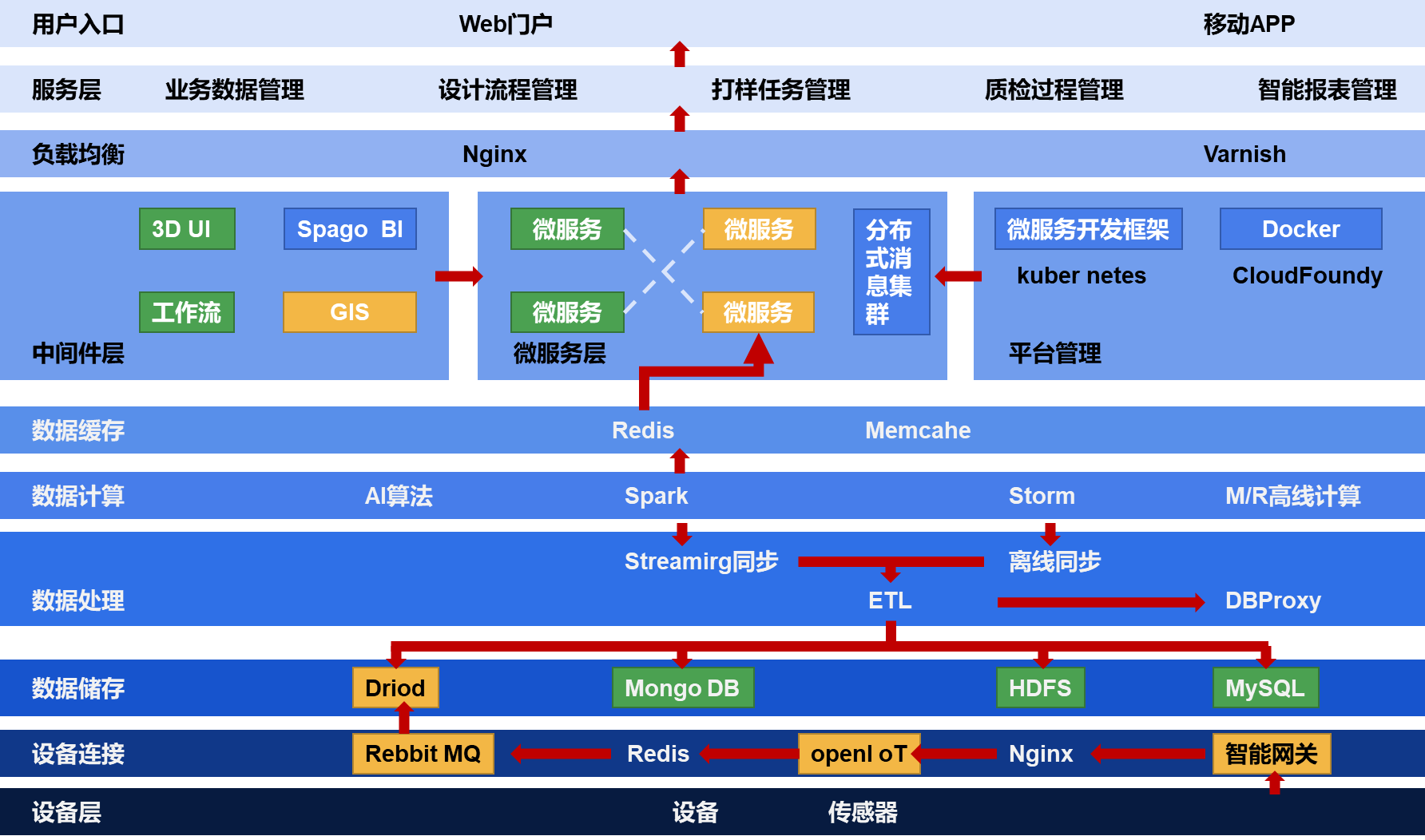 數網星印刷行業智能試制APP采用B/S架構,分為數據層(數據采集層、數據庫層)、業務邏輯層(通用應用平臺層、通用業務層)、數據展現層(服務器端,移動端)、各層之間職責明確、數據統一管理,系統具備擴充性。技術結構大致可以定義為:客戶機層上的表示層主要是通過微服務框架實現的,由顯示視圖產生一個請求。請求被Controller(控制器)接收,它在Controller類中標有RequestMapping注解的方法中尋找請求的URI,并在此方法中執行相應的業務邏輯,在執行完業務邏輯后根據返回值確定展示數據的視圖。