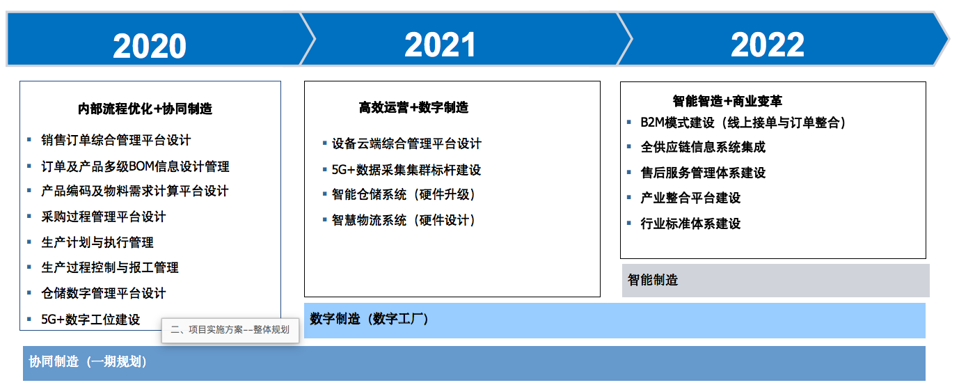 三期(2022)是實(shí)現(xiàn)智能化管理和產(chǎn)業(yè)整合平臺(tái)建設(shè),最終實(shí)現(xiàn)智能制造的目標(biāo)。