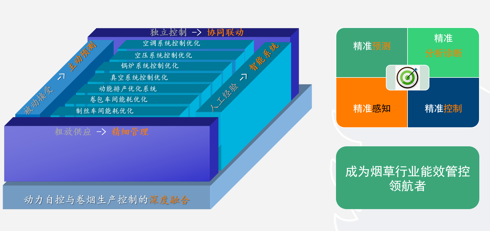 吸收和沉淀人工經驗,發揮大數據模型的價值,建設一套智能化的能源精準控能一體化平臺,實現設備啟停、生產排產、工藝質量需求、環保運行和能源管理體系的深層次的廣泛協同。