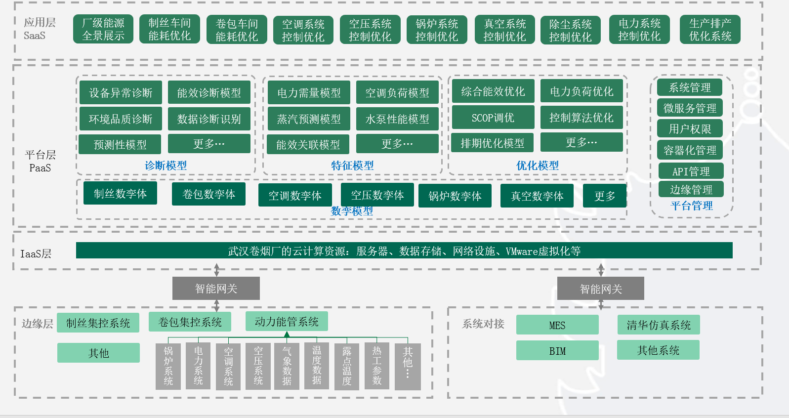 客戶需求如下:基于智能診斷和精益能效理念,建立動力設備模型、建設智能化能源精控平臺,接收能源參數、負荷、消耗的仿真預測,實現系統預測控制與現場工業自控系統反饋控制的深度融合、建立各工序能源消耗基準值和多層級能效評價指標、設備故障和能效預警機制等功能,實現設備啟停、生產排產、工藝質量需求、環保運行和能源管理體系的深層次的廣泛協同。