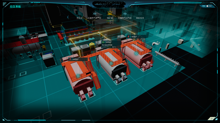 走向展示:基于廠房模型,展示全廠能源介質總體流向及分布情況;
