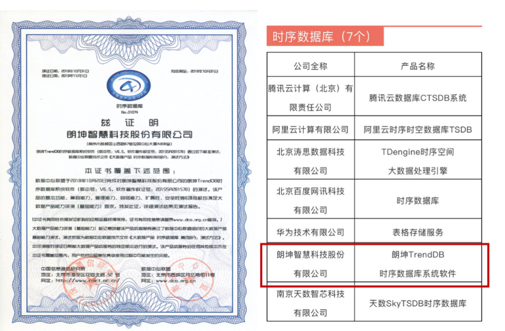 蘇暢TrendDB時序數據庫通過工信部DCA評測