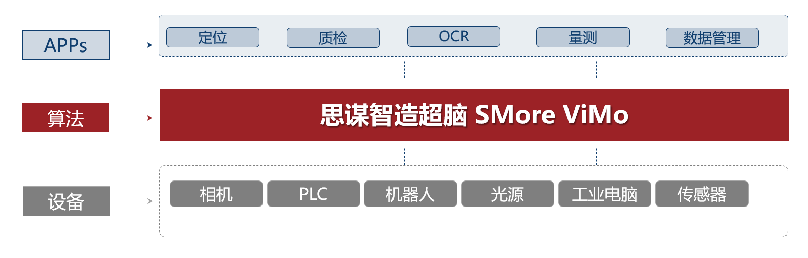 數字化管理架構旨在采集現場的實時檢測數據,通過思謀的ViMo平臺以及ViMo平臺數據服務器進行數字化的管理,提升生產的管理。