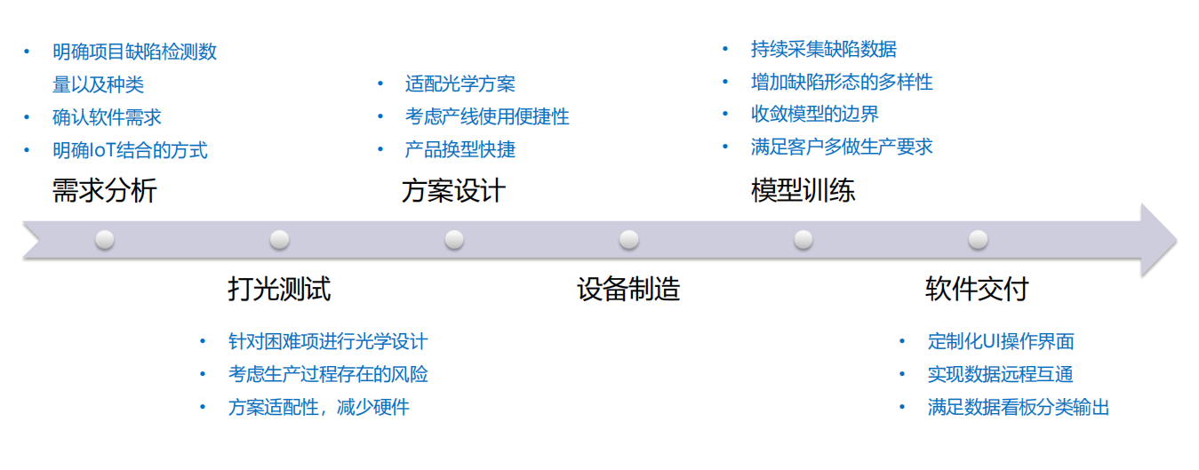 項目的實施過程經歷了需求分析、打光測試、方案設計、設備制造、模型訓練、軟件交付等6個階段。