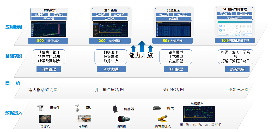 中國移動礦山工業(yè)互聯(lián)網(wǎng)平臺通過對礦山“人、機(jī)、環(huán)”數(shù)據(jù)進(jìn)行精準(zhǔn)化采集、網(wǎng)絡(luò)化傳輸、規(guī)范化集成,實(shí)現(xiàn)可視化展現(xiàn)、自動化操作和智能化服務(wù)的礦山智慧體。