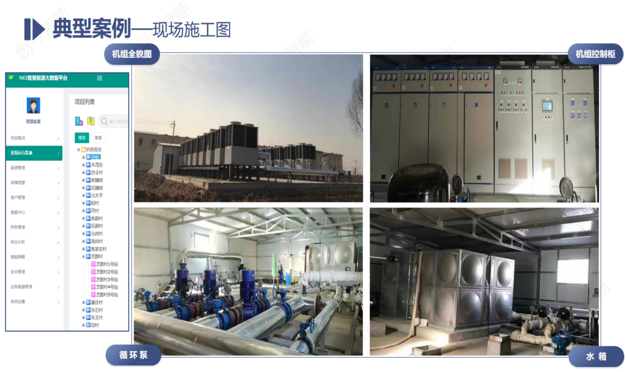 過網絡與創今現場智能控制系統精準操控,實現“源、網、荷、儲、用”全系統動態化、精細化調整,最終達到全網平衡,保持能源站長期最高效運行,實現能源站“按需供熱”,高效節能減排。