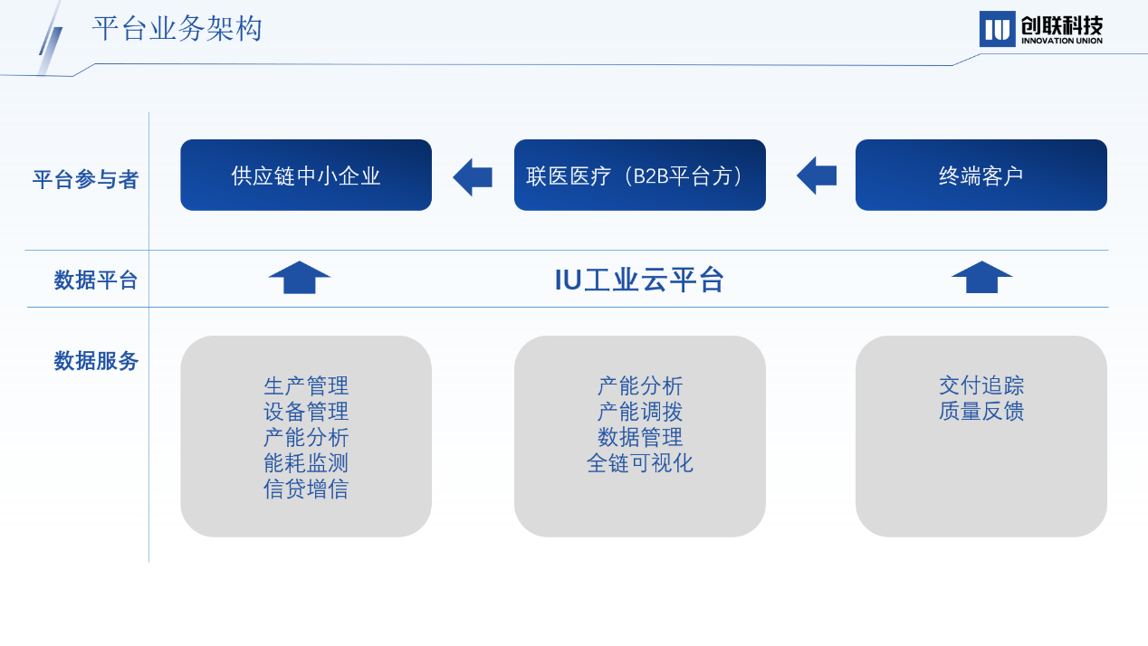 IU工業云平臺是創聯科技自主研發的為工業企業提供生產要素數據上云及設備管理、安全管理、供應鏈管理、能耗管理、云端數據分析等模塊化服務的平臺。