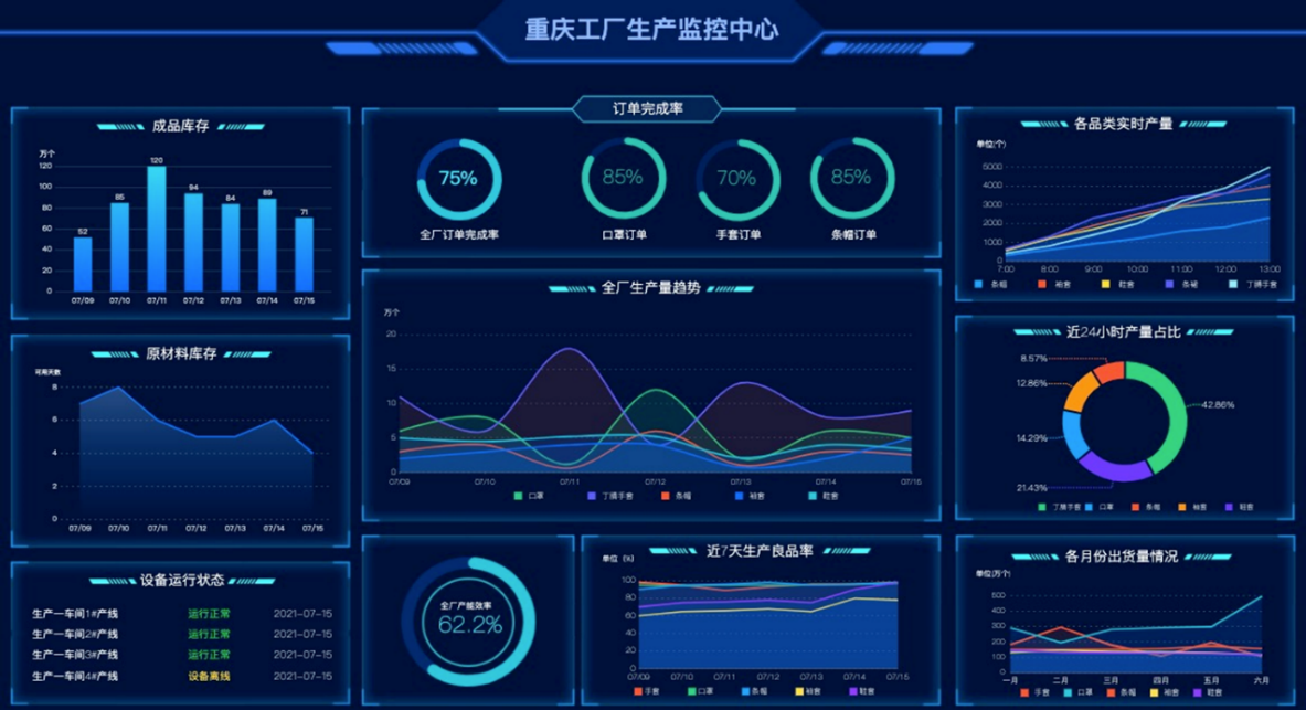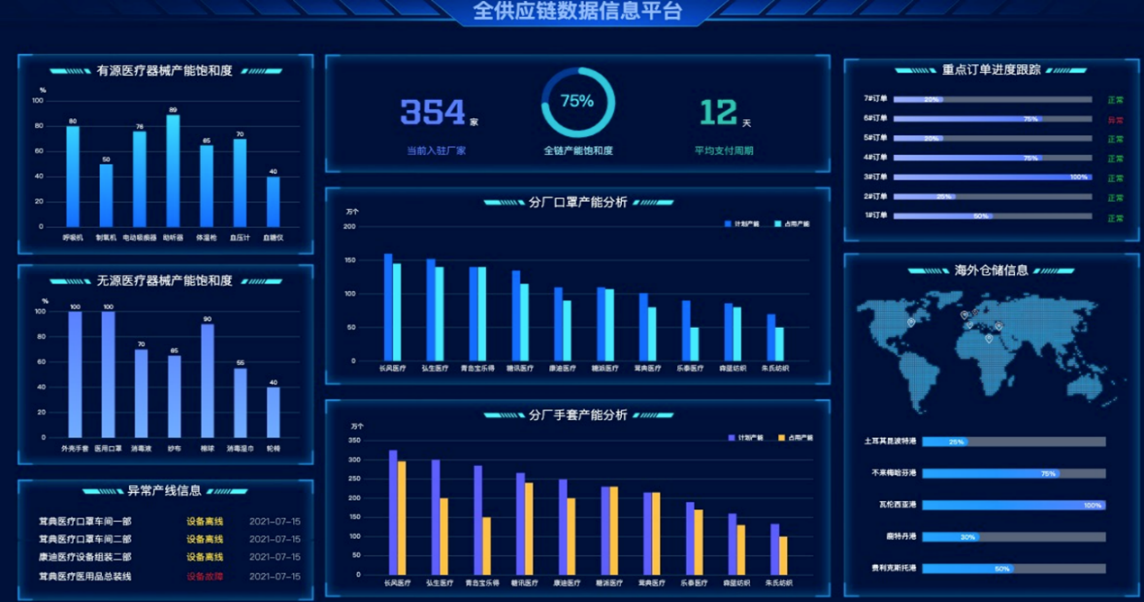 通過生產及產能管理系統,實現集團下游供應商關鍵設備狀態及產能數據上云,結合ERP系統,達到全鏈可視化效果,形成供銷匹配、生產管理、運營管理為一體的全系統管理平臺。