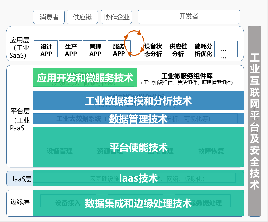 智能縫制產業工業互聯網平臺技術架構,包含三個層次: