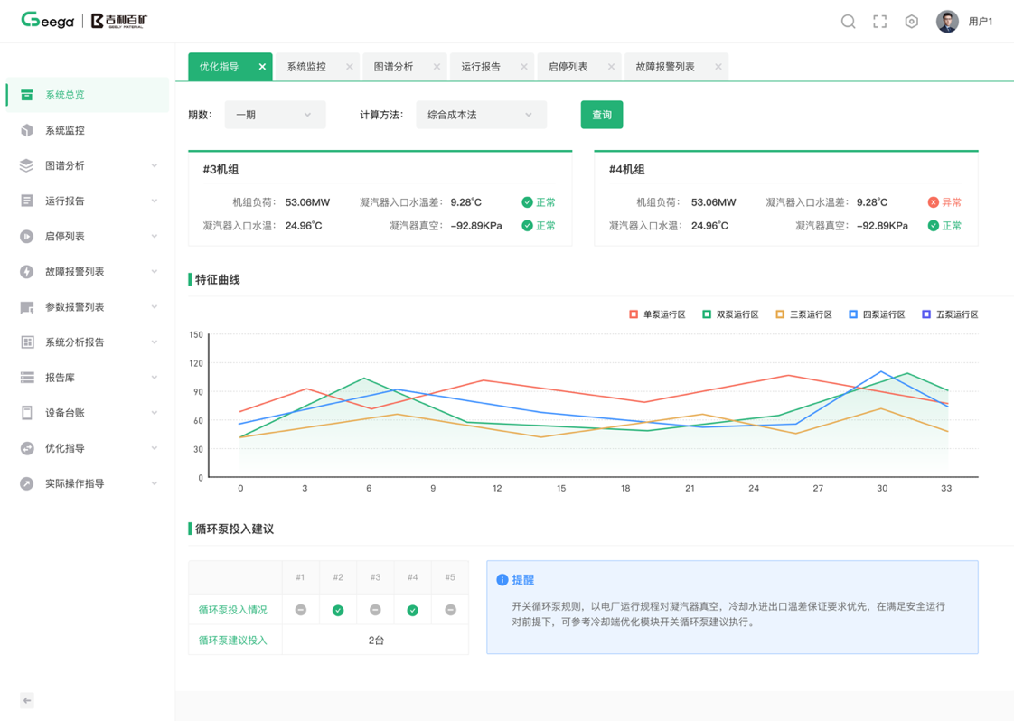 提供風機、空壓機、循環水等通用動力設備管理。風機優化通過建立布袋、煙道入口、煙道出口、風機、脫硫塔的設備模型,對參數實時監控,自動優化風機的開啟臺數、運行頻率,達到運行效率最大化。空壓機優化涵蓋供需平衡、空壓機設備效率提升兩部分:供需平衡通過IIOT平臺實時采集空壓機出口、用能端入口(電解槽、陽極車間、打料罐)、壓縮空氣管路的壓力、流量信息,結合算法模型,輸出推薦的壓縮空氣供氣壓力;設備效率提升是建立空壓機、干燥機設備模型,在給定壓縮空氣需求下,合理分配設備開關、設備頻率,以達成以最少的電耗滿足用氣需求。循環水系統是用于現場設備、產品降溫的系統,主要由換熱器、管道、循環泵組成。循環水優化通過監控用能端的實時溫度與流量信息,結合工藝要求和計量模型優化,實現循環泵的開關與頻率調整,反饋到制冷機設備,調整設備運行效率,達到制冷效率最大化、降低能耗。