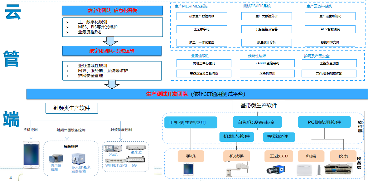 在數字化測試及數據傳輸設計方面,西安中興通訊終端科技有限公司通過分布式精準云實現“云隨需生”,通過確定性精準網實現“網隨云動”,輔以5G工業互聯網中多樣化的“管道”確保數據通訊高質高效,打造精準“云管端”生產管控綜合方案,并聯合運營商和行業伙伴廣泛開展商業實踐,加速行業創新。