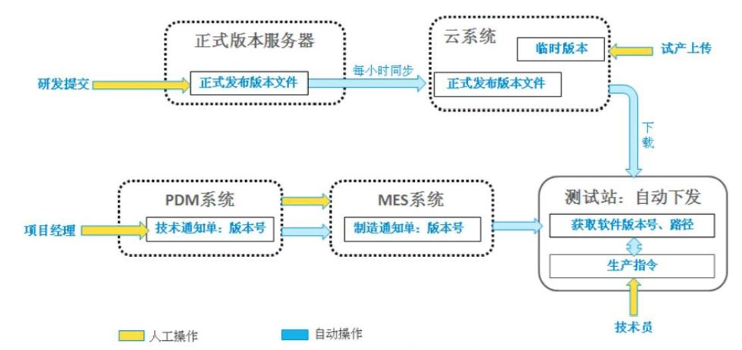 1)創新提出基于“云管端”的生產“云測試”測試方案(架構如圖10所示),將研發中正在推廣的“云測試”方案經過改良運用到生產測試當中,并且可以實現自動化、大規模的測試?!霸茰y試”對于生產測試來說就是實現把數據采集放在客戶端,把數據計算分析放在服務器端,測試結果由服務器端計算出來再傳遞給客戶端。在“云測試”實現的同時,實現了工藝、測試軟件、配置參數通過云端自動下發,節省技術員現場支持及配置的大量工作量,同時提高了產品測試質量。