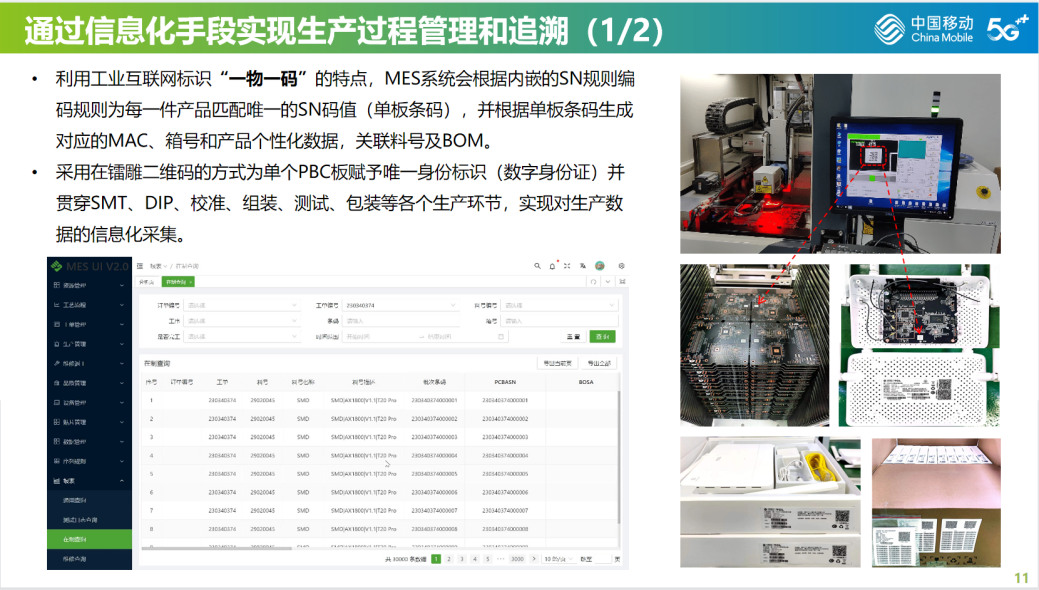 利用工業互聯網標識“一物一碼”的特點,微網自研的魯班制造執行系統(MES)會根據內嵌的SN規則編碼規則為每一件產品匹配唯一的SN碼值(單板條碼),并根據單板條碼生成對應的MAC、箱號和產品個性化數據,關聯料號及BOM。通過該項應用實踐實現了生產過程的可靠管控,產品良率提升30%!