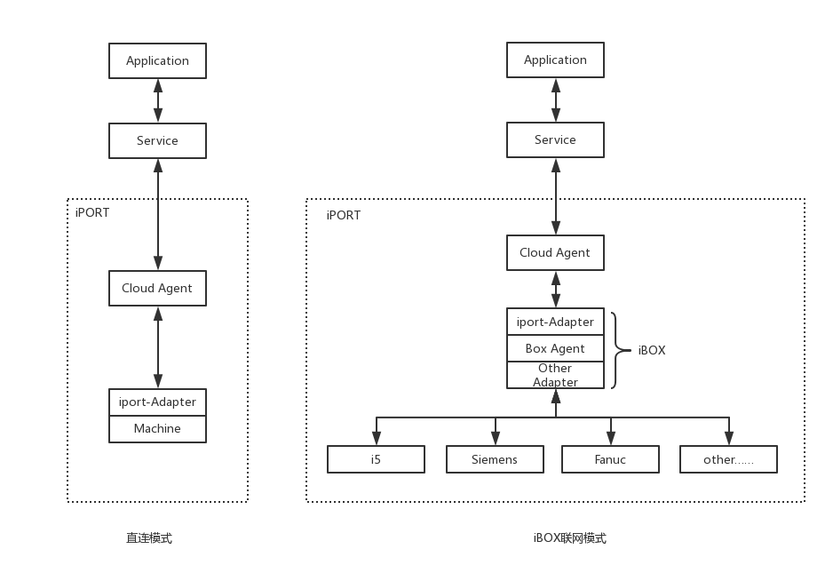iBox和Machine三個基本部分組成,分為兩種應(yīng)用模式:直連模式和間接模式(iBox中轉(zhuǎn))。