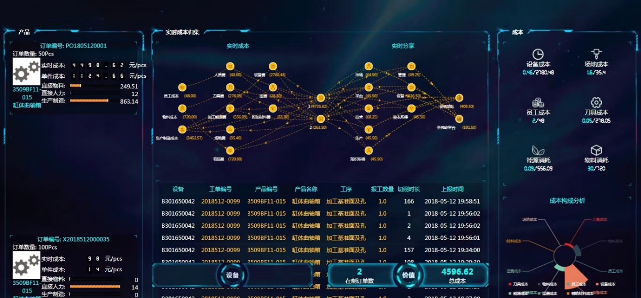 實現(xiàn)產(chǎn)品設(shè)計、制造、管理和智能數(shù)字化、網(wǎng)絡(luò)化、智能化的服務(wù),以標(biāo)準(zhǔn)工單為基本單位,在數(shù)字化設(shè)計、裝備智能化升級、工藝排產(chǎn)、可視化管理以及信息物流追蹤方面,在制造加工中提供了數(shù)字化信息流的保證。