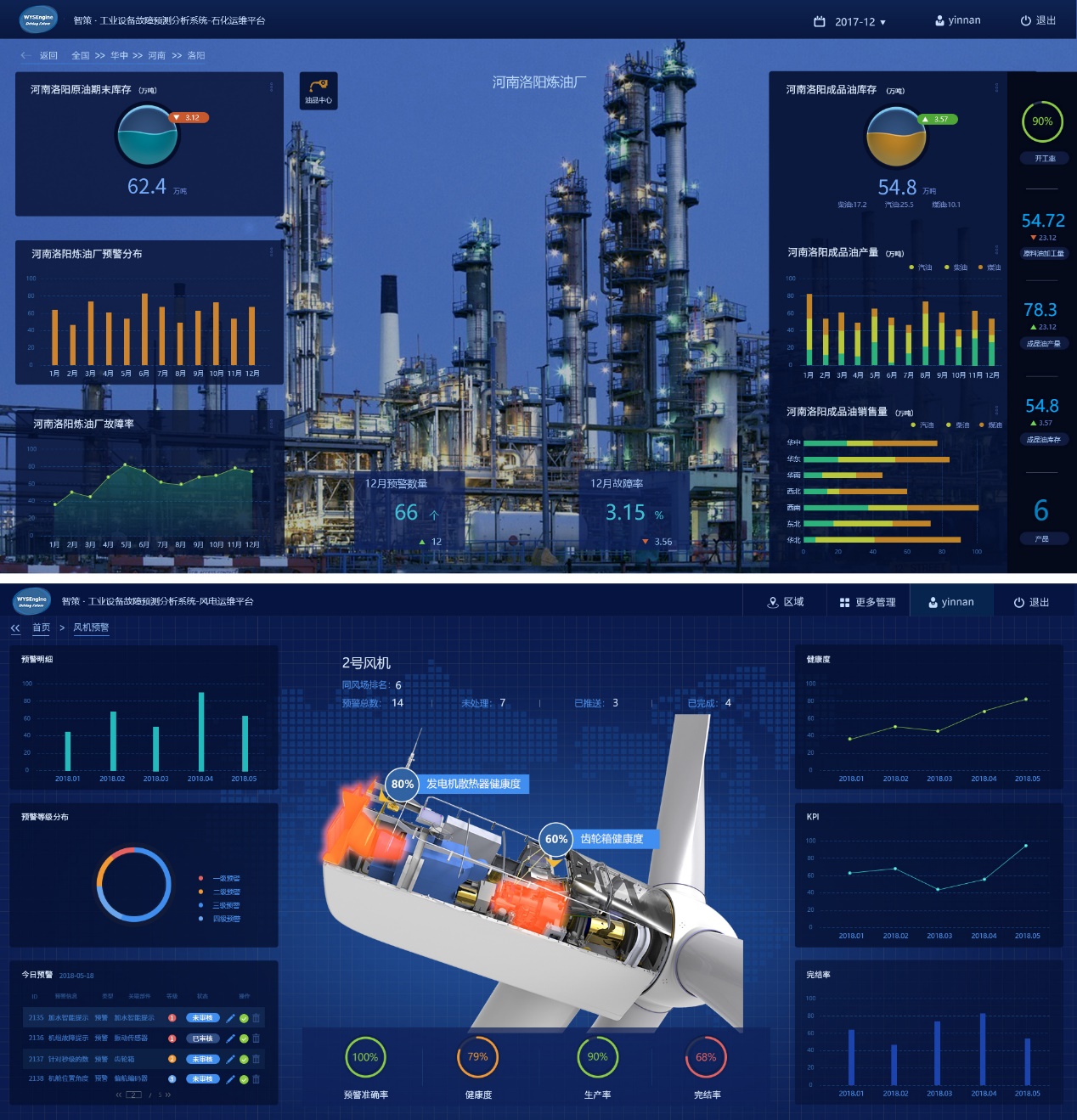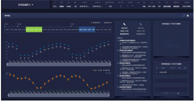 開展設(shè)備運(yùn)行現(xiàn)場(chǎng)精益運(yùn)維管理,對(duì)現(xiàn)場(chǎng)運(yùn)維期的業(yè)務(wù)進(jìn)行細(xì)化,將數(shù)據(jù)分析、資產(chǎn)管理、故障預(yù)測(cè)和診斷、設(shè)備KPI管理、物資保障和作業(yè)窗口等集中在一起,作為基礎(chǔ)數(shù)據(jù),結(jié)合現(xiàn)場(chǎng)運(yùn)維策略,將現(xiàn)場(chǎng)工作任務(wù)進(jìn)行綜合管理,降低設(shè)備運(yùn)維成本(減小備品備件損失和更換頻次)、降低設(shè)備故障頻次和停機(jī)時(shí)間,提高設(shè)備可利用率及收益。其中,重點(diǎn)實(shí)現(xiàn)機(jī)組故障自診斷分析,推送合適作業(yè)窗口、備件位置、數(shù)量信息及故障解決方案;實(shí)現(xiàn)對(duì)現(xiàn)場(chǎng)KPI的管理,給現(xiàn)場(chǎng)運(yùn)維計(jì)劃提供數(shù)據(jù)支撐。以上信息均以工單的形式下發(fā)至設(shè)備現(xiàn)場(chǎng),解決了現(xiàn)有的工單不能自動(dòng)創(chuàng)建、備件位置和數(shù)量查詢繁瑣等問題,改善了故障處理效率,降低了設(shè)備損失及運(yùn)維成本。