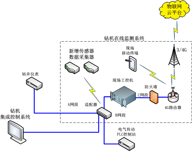 通過寄云NeuSeer Edge工業(yè)網(wǎng)關(guān),從鉆機(jī)集成控制系統(tǒng)、鉆井儀表、電氣傳動PLC控制站以及新增的各種狀態(tài)傳感器等控制系統(tǒng)和傳感器中,通過OPC UA、ModBus、CAN、Profibus/Profinet等通信接口,讀取鉆井工藝參數(shù)、設(shè)備運(yùn)行參數(shù)、運(yùn)維管理參數(shù)等信息,通過MQTT發(fā)送到物聯(lián)網(wǎng)平臺。