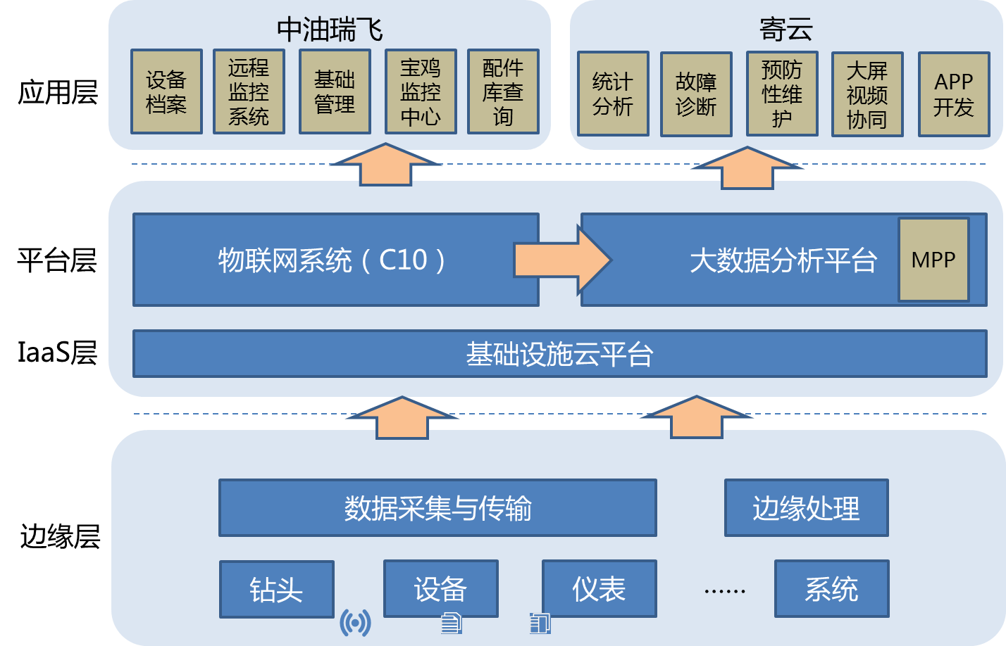 石油生產(chǎn)的連續(xù)性生產(chǎn)要求對石油裝備的非計劃停機(jī)提出了非常高的要求,需要通過各種實(shí)時監(jiān)控、定期的計劃性維修和不定期的視情維修,對設(shè)備進(jìn)行有效的維護(hù),避免由于設(shè)備的無計劃停機(jī)造成巨大的損失。由于鉆井平臺的復(fù)雜設(shè)備,如何做一個邊緣監(jiān)測方案,把所有的數(shù)據(jù)都收集起來統(tǒng)一分析,而不是像原來那樣,需要很多專家到現(xiàn)場逐點(diǎn)查看,這成為設(shè)備供應(yīng)急需解決的首要問題之一。