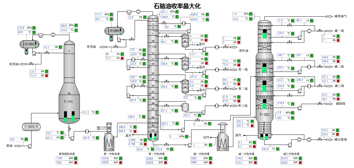 提供生產(chǎn)裝置優(yōu)化解決方案,對生產(chǎn)過程的操作方案、工藝技術(shù)參數(shù)、裝置潛力和瓶頸等進(jìn)行經(jīng)常性的定量分析和診斷,優(yōu)化裝置生產(chǎn)操作。把原油調(diào)合成套裝備與原油近紅外快評工具、原油加工優(yōu)化軟件深度融合,實(shí)現(xiàn)了對近百余種原油配方優(yōu)化和組分的精確控制,原料組分穩(wěn)定可控,確保了常減壓裝置平穩(wěn)經(jīng)濟(jì)控制。同時,將大數(shù)據(jù)分析與機(jī)理分析相結(jié)合,對生產(chǎn)數(shù)據(jù)、石腦油原料進(jìn)行分析建模,建立操作樣本庫,指導(dǎo)工藝參數(shù)優(yōu)化.通過機(jī)理模型驗(yàn)證后,提高汽油收率和辛烷值,增效顯著。