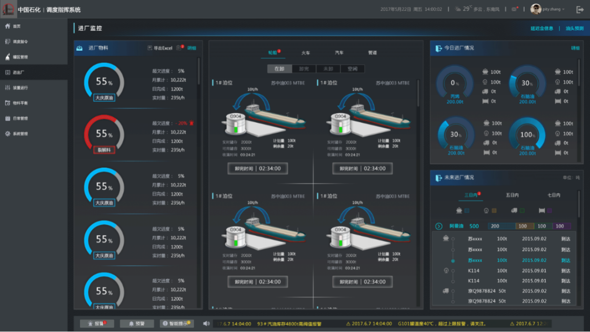 實(shí)現(xiàn)調(diào)度自上而下、物料移動自下而上的業(yè)務(wù)流程自動化;創(chuàng)新物料統(tǒng)計(jì)平衡模式,實(shí)現(xiàn)班組、調(diào)度、統(tǒng)計(jì)數(shù)出一門。整覆蓋全公司生產(chǎn)業(yè)務(wù)調(diào)度指令流轉(zhuǎn)體系,將日計(jì)劃轉(zhuǎn)化為調(diào)度指令,實(shí)現(xiàn)指令從公司級調(diào)度、儲運(yùn)/港儲調(diào)度、內(nèi)操、外操的在線閉環(huán)管理,調(diào)度指令與物料移動實(shí)時同步、業(yè)務(wù)聯(lián)動。在人員數(shù)量不變的情況下,使指令執(zhí)行效率顯著提高,實(shí)現(xiàn)新型減員增效。