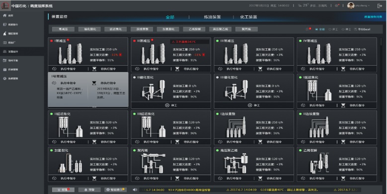基于工業(yè)知識庫,實(shí)現(xiàn)調(diào)度指揮在線閉環(huán)。提升協(xié)同指揮效率,提高科學(xué)決策水平。支撐全廠調(diào)度指揮應(yīng)用,實(shí)現(xiàn)基于管理知識的調(diào)度智能化。生產(chǎn)監(jiān)控為運(yùn)行、進(jìn)出廠、罐區(qū)、物料平衡等敏感環(huán)節(jié)提供高效監(jiān)控工具。預(yù)警告警為運(yùn)行人員提供生產(chǎn)報(bào)警、生產(chǎn)預(yù)警、智能處理等信息。基于調(diào)度指令生成規(guī)則,對調(diào)度指令的編制、審核、發(fā)布、執(zhí)行與反饋過程實(shí)現(xiàn)在線閉環(huán)管理。