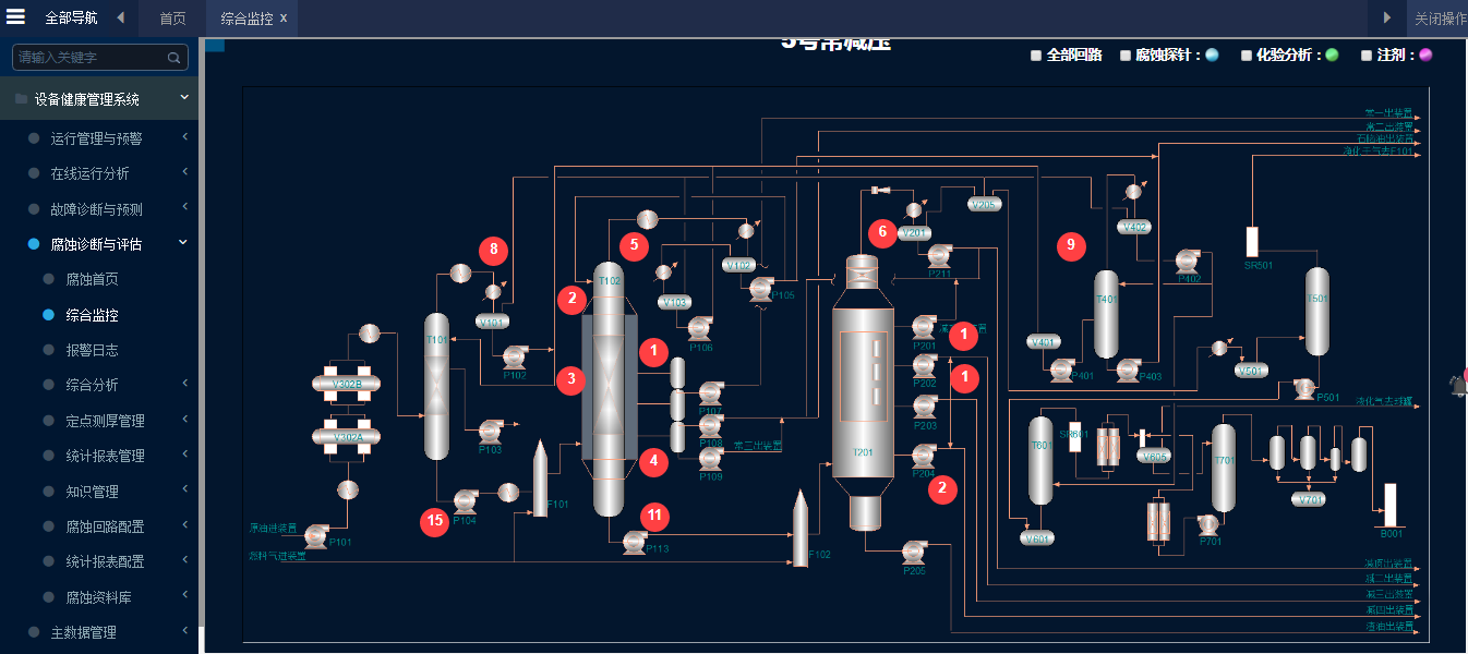基于數(shù)字孿生工業(yè)大數(shù)據(jù)模型的大型工業(yè)設(shè)備健康管理,幫助企業(yè)實(shí)現(xiàn)動設(shè)備預(yù)防性維修,減少非計(jì)劃停工。包括:運(yùn)行管理與預(yù)警、在線運(yùn)行分析、故障診斷與預(yù)測和腐蝕評估與預(yù)測。
