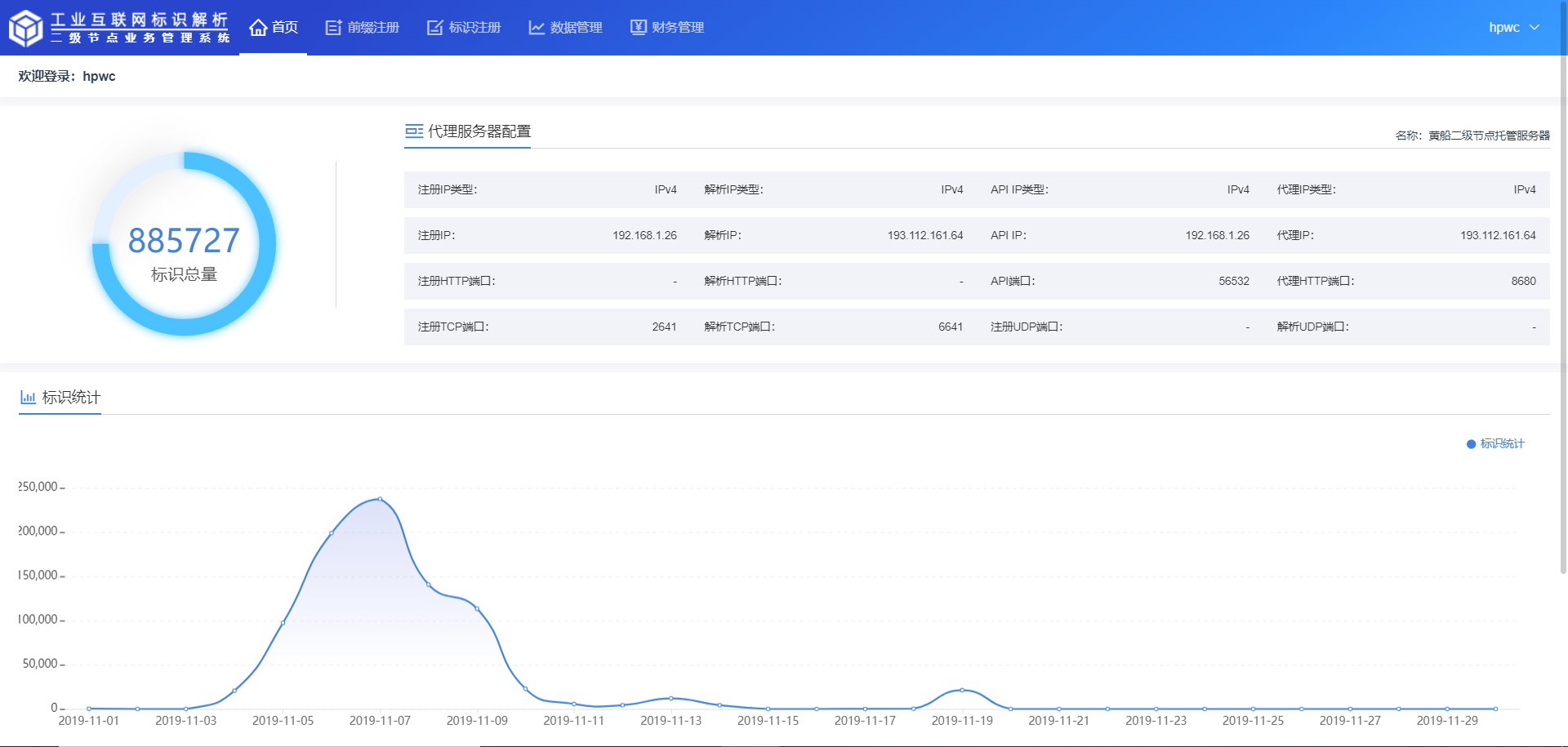 二級節點通過部署智能分布式標識系統(Intelligent Distributed Identifier System)為船舶行業提供注冊、解析、應用及監測功能,讓企業用戶通過接入二級節點實現標識注冊、標識解析到標識管理的一站式服務體驗。二級節點架構圖如上圖,標識注冊功能由注冊子系統和分配子系統實現,包含對標識的注冊、刪除、修改等管理操作,以及查詢操作,基于區塊鏈技術建立注冊認證模式,形成去中心化的信任機制;業務綜合管理子系統支撐二級節點業務開展財務管理、統計分析以及提供統一的服務入口功能;標識解析監測子系統兼具訪問控制與隱私保護機制,通過安全技術與監測分析手段保障標識解析節點的安全、穩定、高效運行,其系統截圖如下所示: