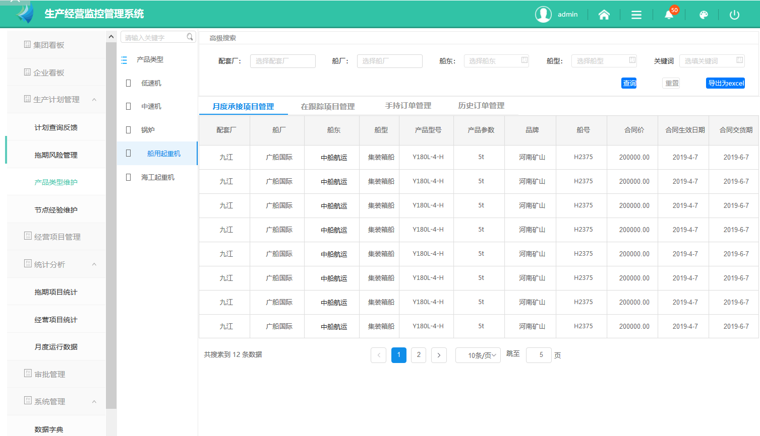 其中月度承接項目管理定義為月度新增的生產計劃;在跟蹤項目管理定義為尚未形成合同簽訂的項目;手持訂單管理定義為已簽訂合同尚未完成交付的項目;歷史訂單管理定義為已完成交付的項目。