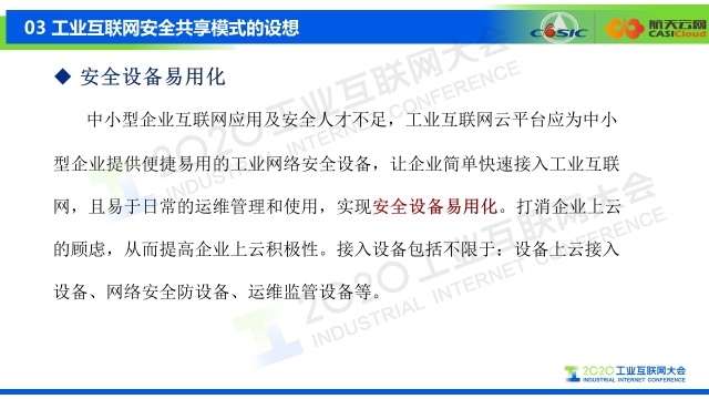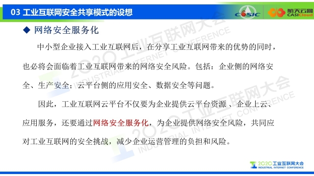 8月30日下午,在2020工業互聯網大會“工業互聯網安全”主題論壇上,航天云網科技發展有限責任公司安全總監、北京航天紫光科技有限公司副總經理穆森分享了航天云網關于中小型工業企業工業互聯網安全共享模式的設想。