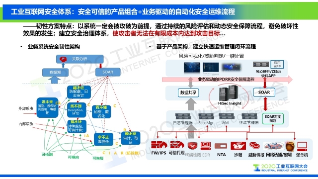 “工業(yè)互聯(lián)網(wǎng)存在漏洞開放、威脅情報(bào)價(jià)值低、難以人工運(yùn)維等特點(diǎn),存在大量不確定風(fēng)險(xiǎn)。通過各種安全產(chǎn)品的疊加,無法實(shí)現(xiàn)安全保障目標(biāo)。必須基于“韌性方法論”,通過建立“業(yè)務(wù)信任、威脅防御、動(dòng)態(tài)運(yùn)維”安全體系,構(gòu)建業(yè)務(wù)安全保障流程,才能發(fā)揮安全的系統(tǒng)化優(yōu)勢,有效保障工業(yè)互聯(lián)網(wǎng)安全。”