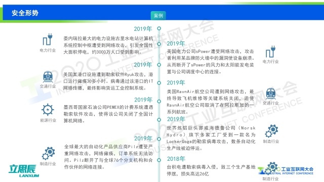 點擊鏈接,觀看演講視頻 專家說 “目前,以預防風險為核心的工業控制信息安全管理已成為業界共識。立思辰認為工業控制安全需要從“可知”“可管”兩方面入手。一方面企業需要“可知”:對工控資產可知,以確定工控安全防護范圍。對工控通訊過程可知,以確定可信運行環境。另一方面,企業需要“可管”:對工業協議可管,避免協議漏洞或異常協議訪問;對操作過程可管,對非法操作及可疑操作告警;對審計記錄可管,當事件發生后可追溯歷史。這樣才能更好的實現安全管控,提升經濟穩定運營能力,實現行業高質量發展。” 以下是演講PPT 敬請閱讀