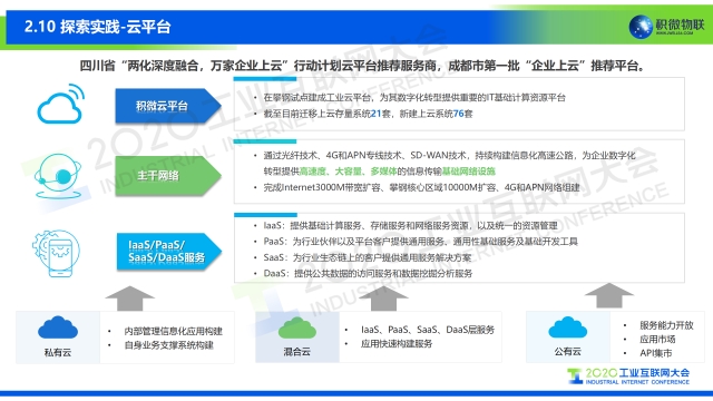 專家說 “積微物聯未來將圍繞工業互聯網的定義,去發展整個生態圈,為生產企業、制造企業、倉儲物流、終端用戶、分銷商等等這個鏈條的所有角色去打造一些更體現智能制造的APP,去做一些業務管理體系的標準化,增強一些物聯網基礎能力,包括把積微物聯已經成型的驗證過產品體系輸出給全行業,集成這樣的服務能力,再加上在線協同,去共建共享一個產業的生態圈。” 以下是演講PPT 敬請閱讀