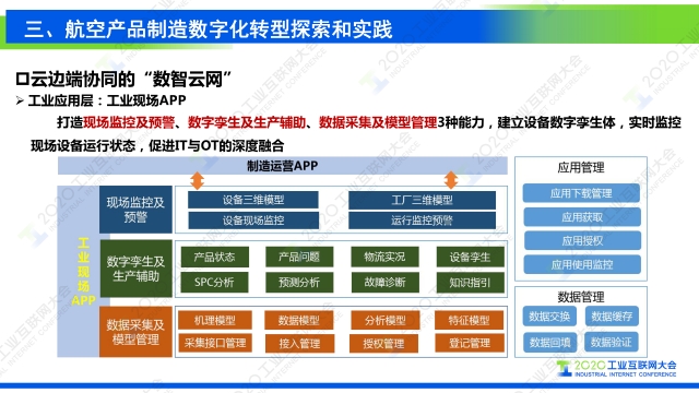在2020工業互聯網大會“工業互聯網行業應用”主題論壇上,航空工業成都飛機工業集團有限公司流程與信息化部主任謝剛發表題為《工業互聯網支撐復雜航空產品制造數字化轉型》的演講,圍繞工業互聯網分享了航空制造企業數字化轉型升級路徑。