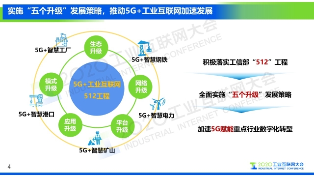 “中國移動積極落實工信部512工程,全面實施“五個升級”發展策略,一是網絡升級,構建全球領先的新一代5G+工業互聯網智能基礎設施;二是平臺升級,發揮5G放大、疊加、倍增效應,全面升級工業互聯網平臺體系;三是應用升級,深入典型生產場景,打造產業數字化“樣板房”;四是模式升級,需求共同發現、產品共同創新、項目共同交付、價值共同創造,促進跨界融合創新;五是生態升級,推出四類合作方式,做大工業互聯網朋友圈。目前,聚焦智慧工廠、智慧鋼鐵、智慧礦山、智慧電力、智慧港口等垂直行業進行深入拓展,已初步形成規模示范效應。”