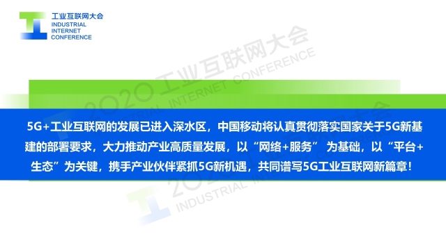 8月30日上午,在2020工業互聯網大會“5G與工業互聯網融合發展”主題論壇上,中國移動通信集團有限公司政企事業部副總經理俞承志以《5G+工業互聯網加速融合 推動產業高質量發展》為題作演講,從網絡升級和應用升級兩個方面,介紹了中國移動5G+工業互聯網的應用實踐。