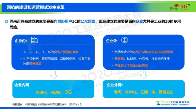 “原來運營商建立的主要是面向最終用戶To C的公眾網絡,現在建立的主要是面向企業尤其是工業的To B的專用網絡。5G網絡、MEC及云計算、大數據、物聯網、AI、區塊鏈等新興技術將賦能工業領域智能化的升級。5G專網為工業互聯網而生,中國聯通分別推出虛擬專網(網絡切片技術)、混合專網(MEC數據分流)、獨立專網(物理隔離網絡)。隨著中國聯通在5G+工業互聯網的實踐與探索,也沉淀了較為完整的產品體系,分為終端設備、工業專網、工業互聯網AIoT平臺、開放應用以及工業安全五個層次。”