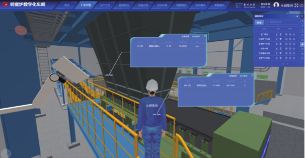 3.3.1 虛擬現(xiàn)場(chǎng)服務(wù)5G全連接工廠使用BIM技術(shù)構(gòu)建全廠的三維模型。傳統(tǒng)的三維建模,往往使用3DMax等純圖形軟件,建成的模型僅包含幾何性質(zhì),僅能做展示用,無法將其與其他數(shù)據(jù)相關(guān)聯(lián)。近年來,智能三維模型軟件被越來越多地用于工業(yè)三維建模,而BIM技術(shù)是其中應(yīng)用較為廣泛的。BIM的核心是通過建立虛擬的三維模型,利用數(shù)字化技術(shù),為這個(gè)模型提供完整的、與實(shí)際情況一致的信息庫(kù)。該信息庫(kù)不僅包含描述建筑物構(gòu)件的幾何信息、專業(yè)屬性及狀態(tài)信息,還包含非構(gòu)件對(duì)象(如空間、運(yùn)動(dòng)行為)的狀態(tài)信息。借助生產(chǎn)線的三維模型,大大提高了生產(chǎn)的信息集成化程度,從而將生產(chǎn)打造成一個(gè)工程信息交換和共享的平臺(tái)。BIM模型中的每一個(gè)實(shí)體,均能夠被賦予自定義的屬性,并通過這些屬性與其他系統(tǒng)進(jìn)行關(guān)聯(lián)。點(diǎn)擊模型中的實(shí)體,便可獲取各種信息。如點(diǎn)擊攝像頭打開實(shí)時(shí)視頻,當(dāng)設(shè)備異常或故障報(bào)警時(shí),中控工可以通過BIM平臺(tái)快速定位到該設(shè)備并采取相應(yīng)操作。