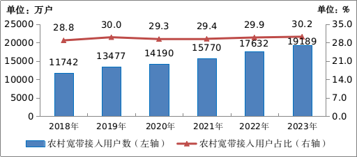 圖2-4 2018—2023年農(nóng)村寬帶接入用戶及占比情況