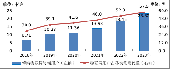 圖2-5 2018-2023年物聯(lián)網(wǎng)用戶情況